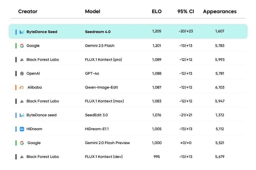 According to the Artificial Analysis Image Editing Leaderboard, Bytedance Seed’s Seedream 4.0 has taken the No.1 place leaving behind AI image generation tools like Nano Banana by Google, Flux.1 Kontext by Black Forest Labs, and more.